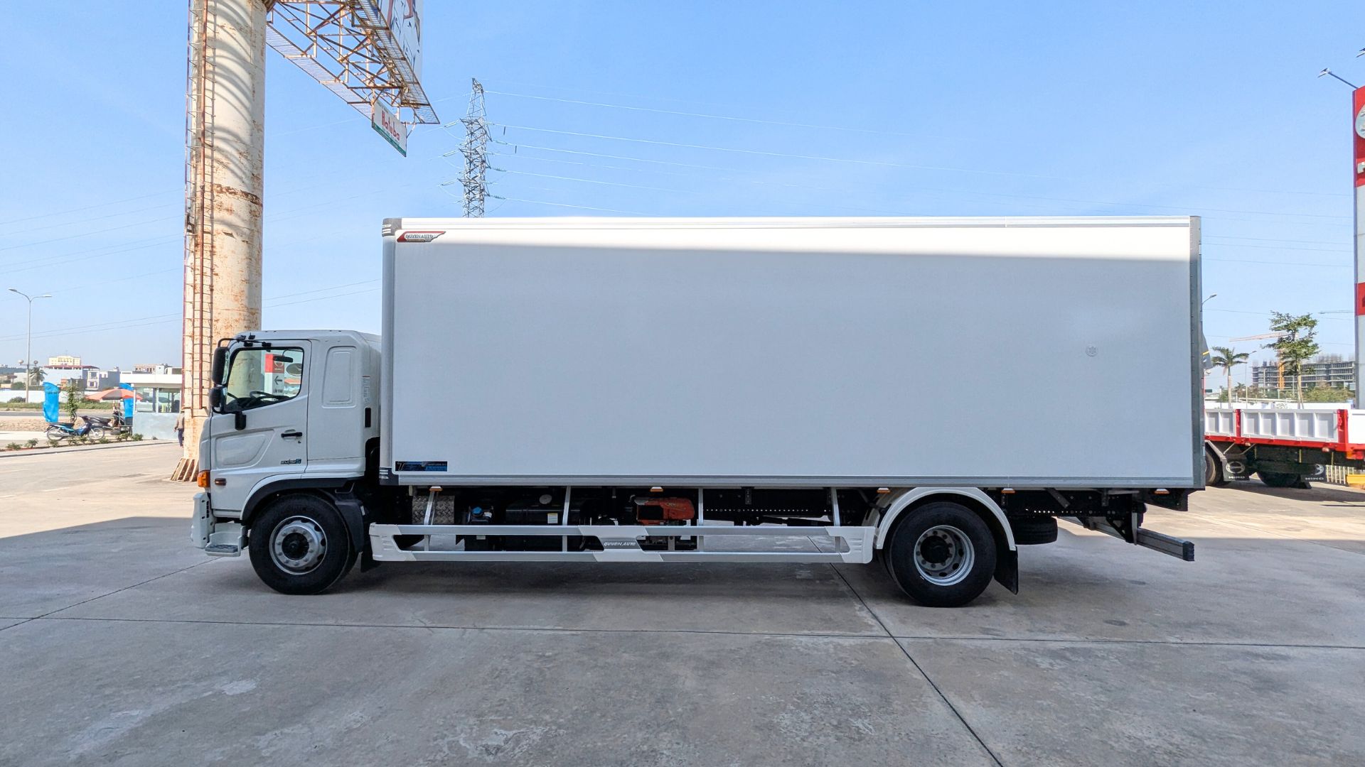 Khung Chassis Siêu Dài (Chiều dài cơ sở 6.430 mm): Đây là một trong những điểm mạnh nổi bật của FG8JT8A-PGV, với khoảng cách từ sau Cabin đến điểm cuối chassis lên tới 8.725 mm. Kích thước này tạo ra không gian lý tưởng để đóng các loại thùng xe siêu dài, đa dạng tại Hino Miền Trung, đáp ứng mọi nhu cầu chuyên chở đặc thù như: