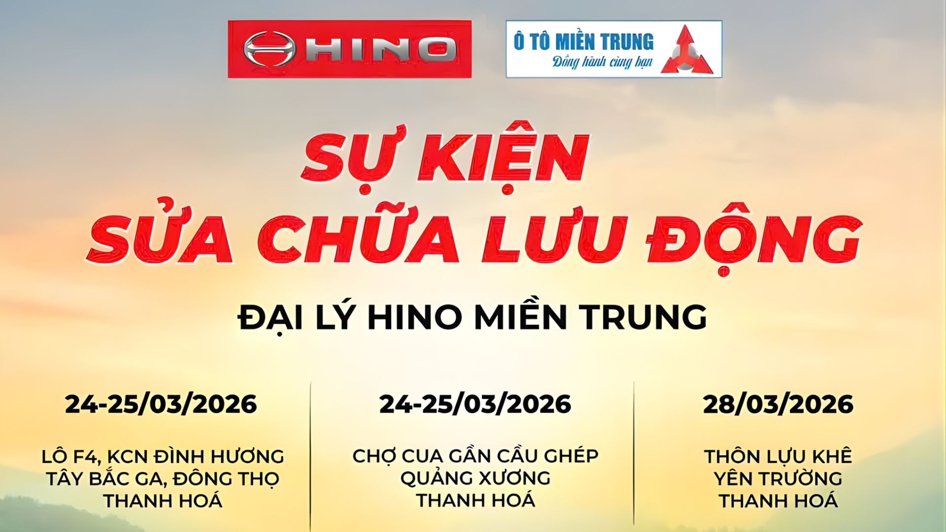 [SỰ KIỆN] Sửa Chữa Lưu Động Hino Tại Thanh Hóa Tháng 03/2026: Ưu Đãi Phụ Tùng & Quà Tặng Hấp Dẫn